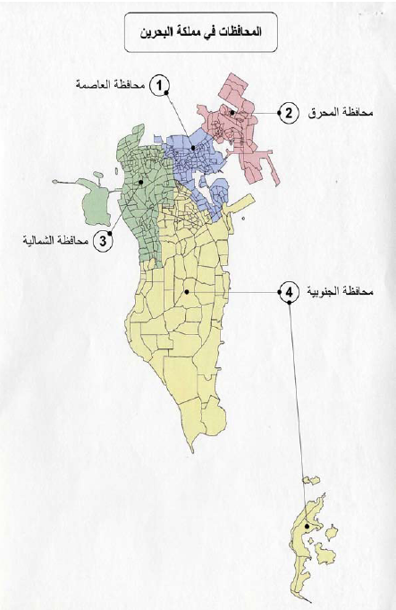 " تقسم مملكة البحرين إلى عدد من المحافظات على الوجه الآتي: