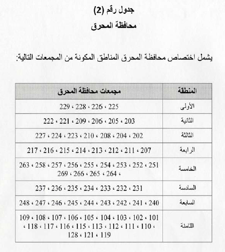 وتشمل كل محافظة المناطق الداخلة في حدودها، طبقاً للجداول والخرائط المرافقة.